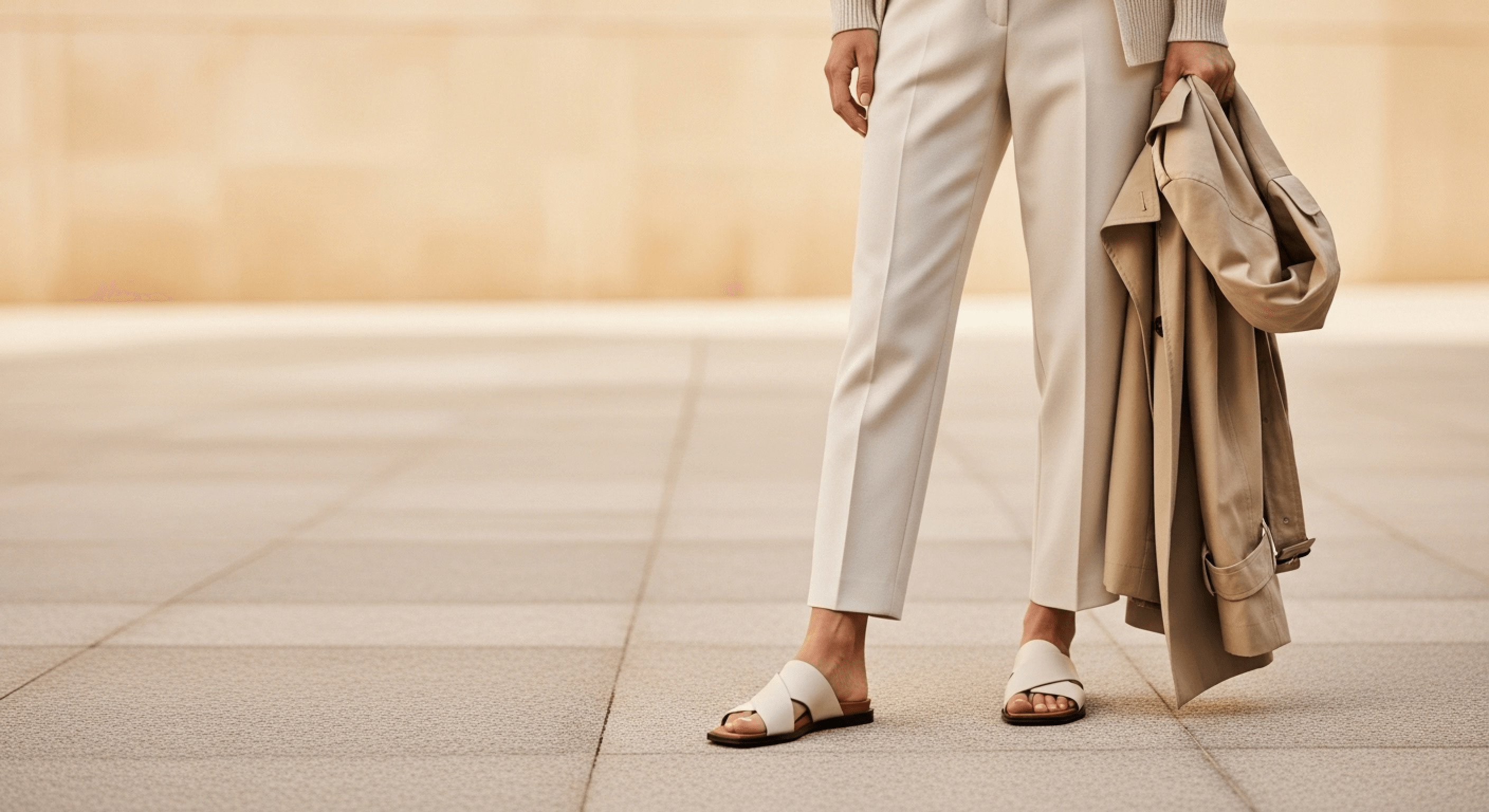 Product: AuraFlow High-Waisted Palazzo Trousers, wide-leg silhouette, architectural front pleats, floor-sweeping lengthMaterial: 70% Tencel™ Lyocell a..